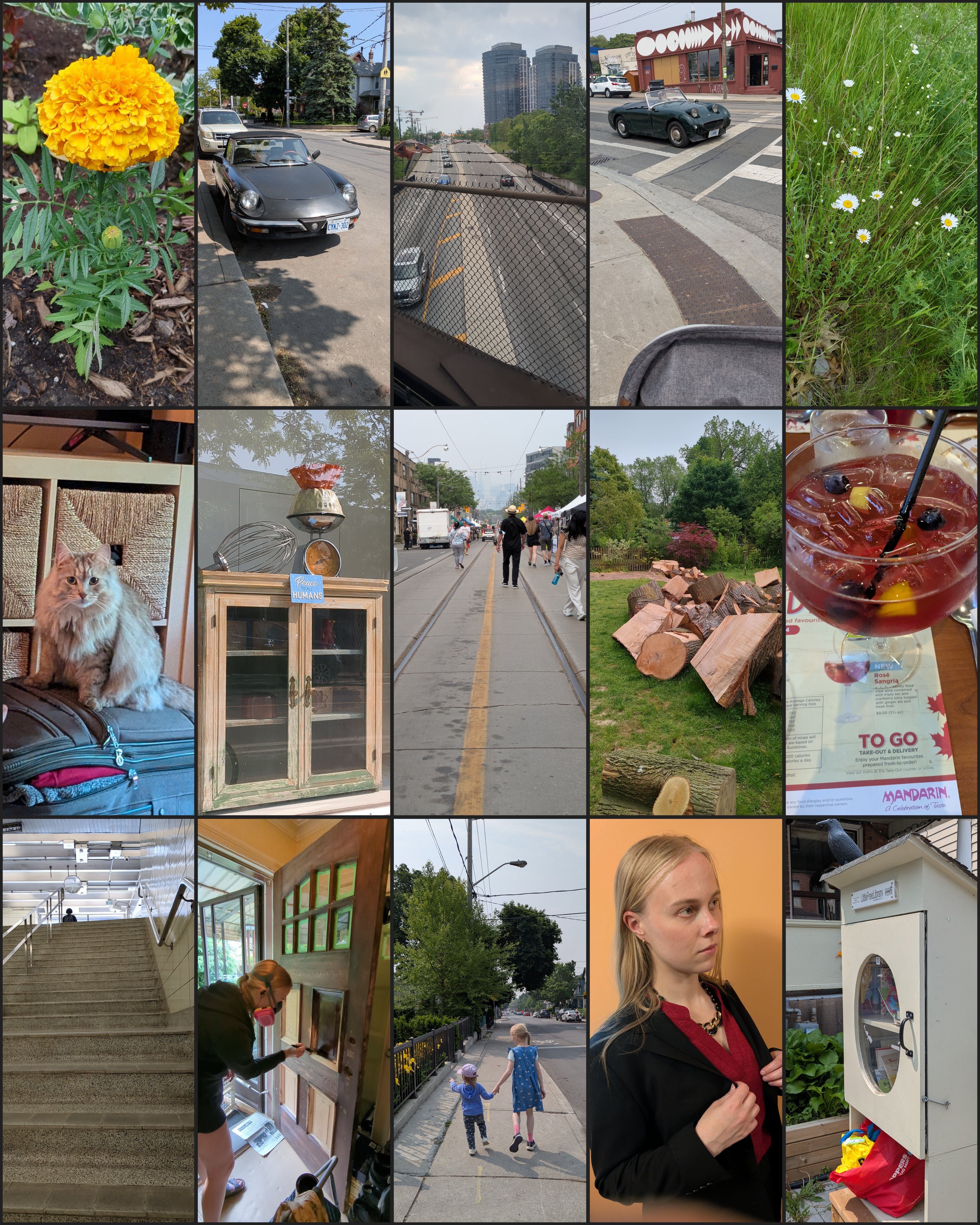 Teine rida: kiisu istub Toomase kohvri otsas, sest ilmselt vaja end kuidagi sinna sokutada, et saaks Eestisse lennata. Keskmine foto on Dundase tänava festival, mis võttis enda alla umbes 2km teest - Little Portugal ja Little Italy rajoonid Torontos. Jalutasime natuke lastega, enne kui suur möll algas, mis terve nädalavahetuse kestis. Siis on mul läbi aia napsatud pilt ühest suurest vanast puust, mis maha võetud. Ning veel üks pilt suurest Kanada-teemalisest joogist, mille tellisin hiina restoranis. Oleme tihtipeale enne Eesti reisi käinud seal söömas. Kuigi seekord ei saanud Kirke kaasa tulla. No-jah, eks lastel hakka ka lõpuks oma elu ;-)