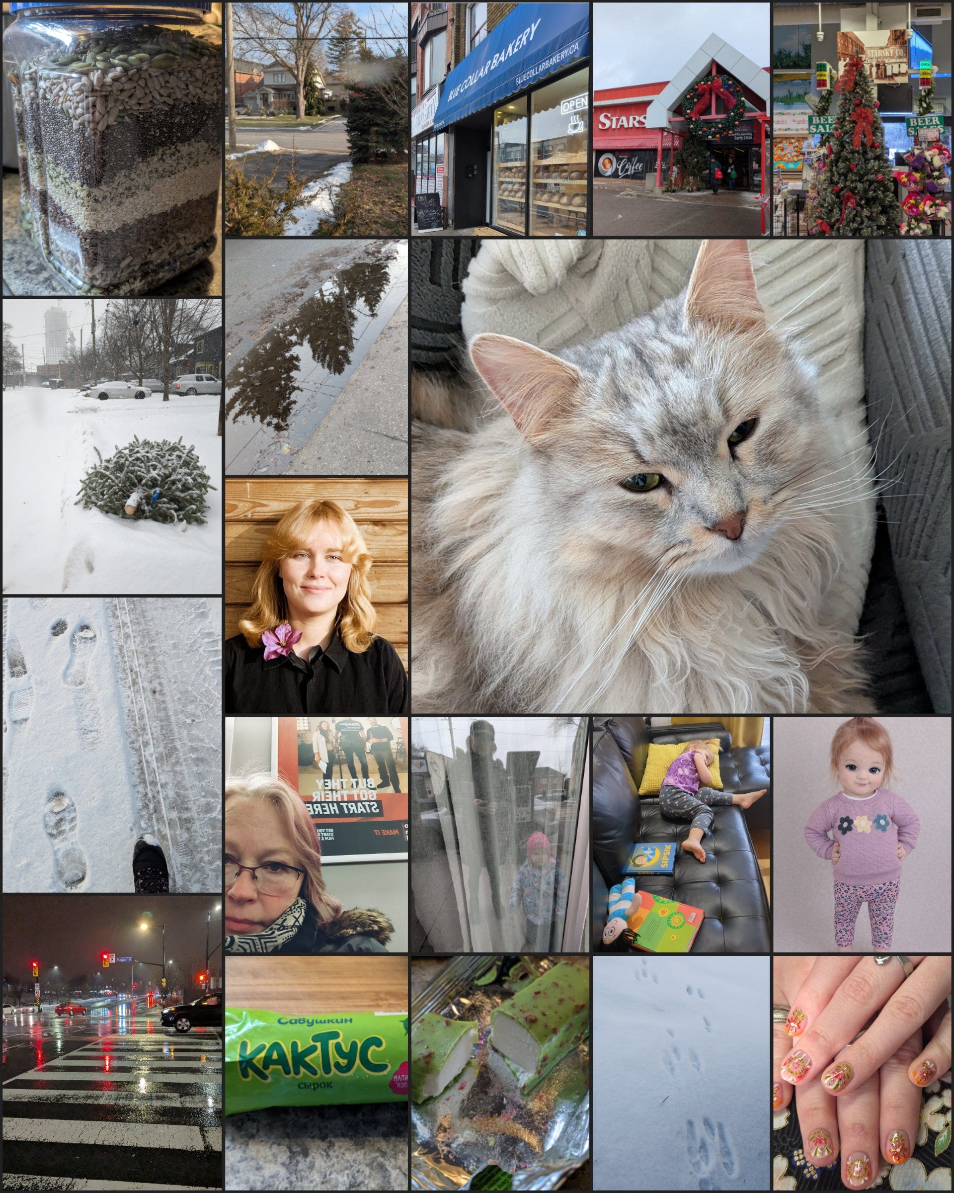 Natuke naljakamate uudiste vallast tuli teade mehest, kes helistas hädaabi numbrile ja kaebas, et lumesahad liikusid liiga aeglaselt mööda teed. Oh, well! ütleb selle peale üsna kohe 35 aastat Kanadas elanud mina 😏 Minust rääkides, siis allpool on Toomase jagatud foto sellest ajast, kui me tuttavaks saime (millest on siis kohe 40 aastat) ning selle all hiljuti metroos klõpsatud pilt. Peaaegu sama ju 😄 Alumises nurgas Kirke kenad küüned, ikka tema “vabakutselise” küünetehniku poolt, kes muidu pangas IT alal töötab.