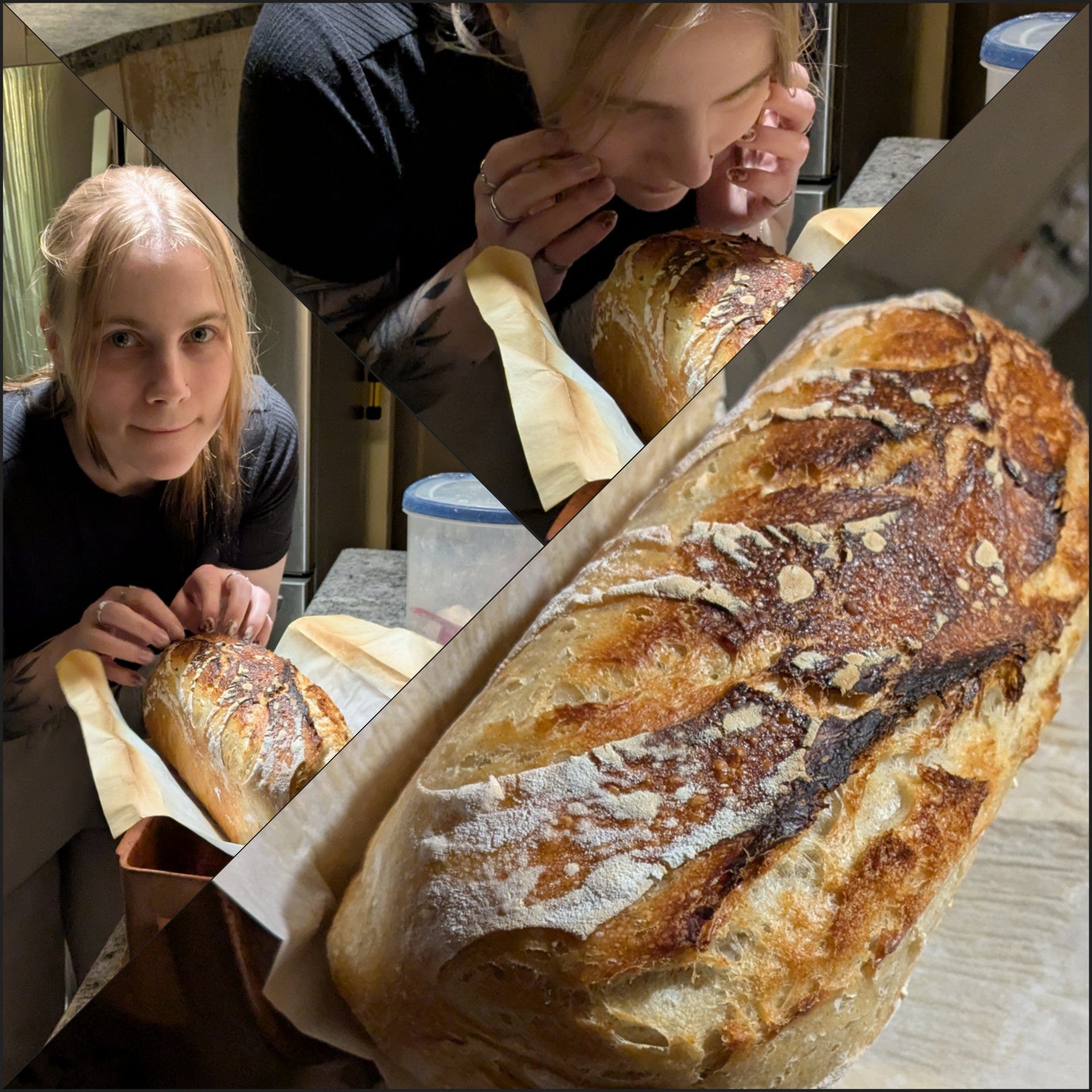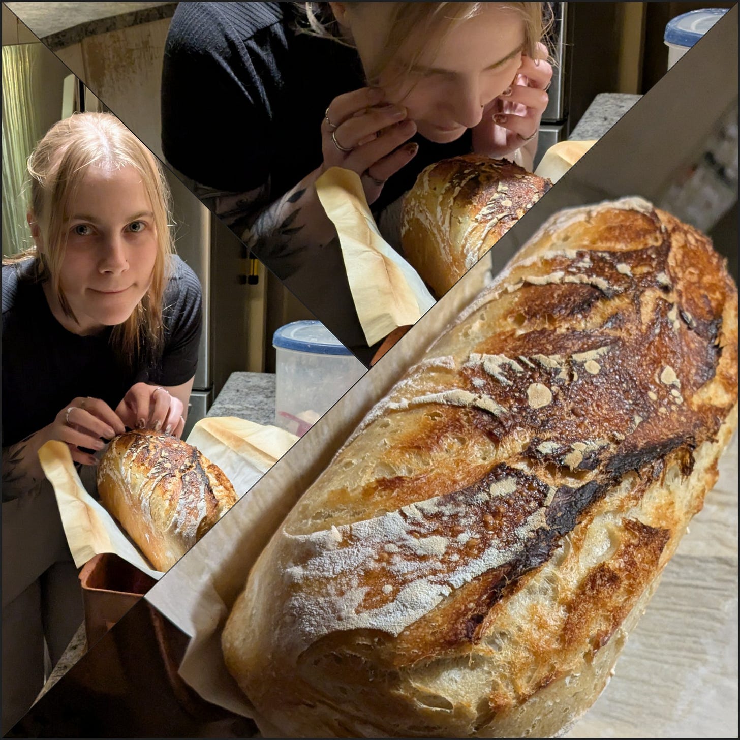 Ja meil oli Kirkega väga tore pühapäev. Sest ta avaldas soovi õppida ära haputaignast saia küpsetamine. Pildil tulemus. Õnneks on ta selline minu moodi, keda ei heiduta, kui ma ütlen “tunde järgi”. Veekogus on ainuke, mis peab paigas olema (sellest olenevalt ka sool). Sest siis tead, kui suur päts tuleb. Sealt edasi pole tegemist mingi peenteadusega, pigem ikka vaba loominguga (millised jahud, kui palju, lisandid, jne.jne.)